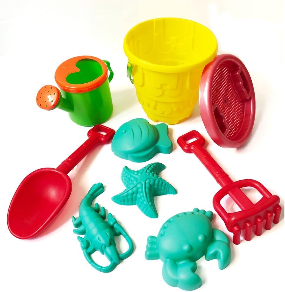 • مجموعة جردل الشاطئ للأطفال مصنوعة من البلاستيك القوي وبألوان زاهية ومرحة.