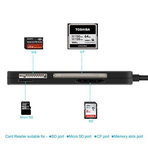 • توافق البطاقات: يدعم SDXC, SDHC, SD, CF, CF عالي السرعة (UDMA), MS, Micro SDXC, Micro SDHC, Micro SDSD.
