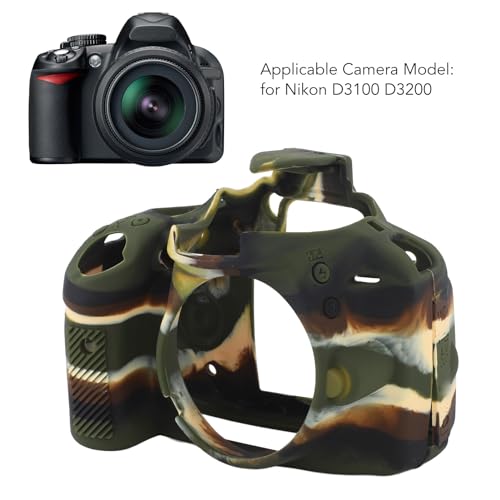 Ccylez - سي سي واي ال اي زد حافظة كاميرا من السيليكون الناعم لكاميرا نيكون D3100 D3200 مخصصة ناعمة ومضادة للانزلاق مع تصميم زر للتشغيل