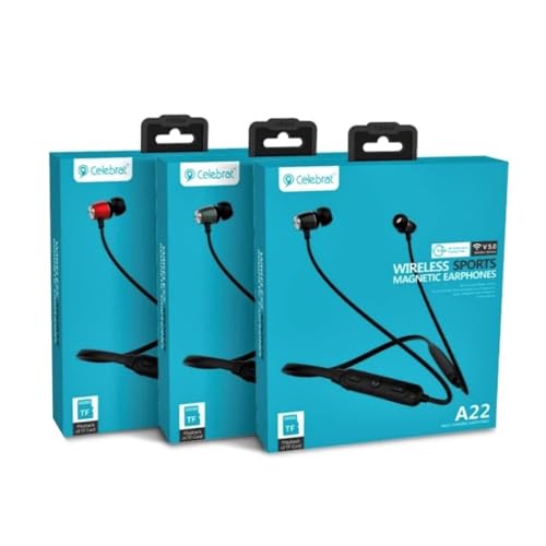 Generic - سماعات سيليبريت A22 الرياضية اللاسلكية المغناطيسية - بلوتوث V5.0، صوت محيطي 360 درجة، ميكروفون عالي الدقة، تصميم مريح للرقبة، تشغيل بطاقة تي اف، بطارية طويلة الأمد، على الأذن، أسود