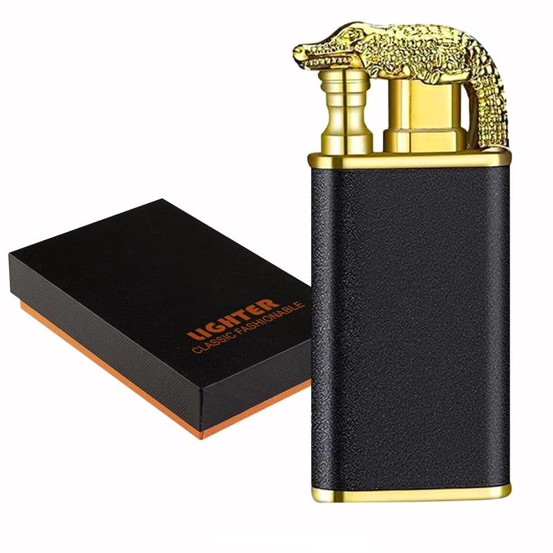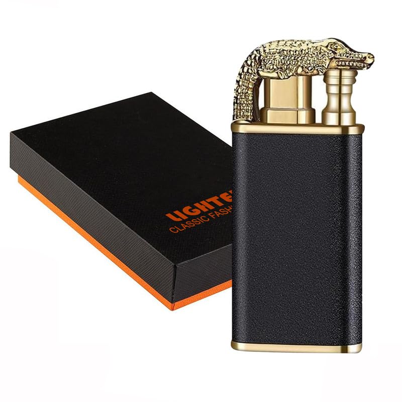CHAFFUL - ولاعة بيوتان بتصميم تمساح مزدوجة اللهب رائعة ومقاومة للرياح وقابلة لإعادة الملء ومناسبة للألعاب النارية من تشافول