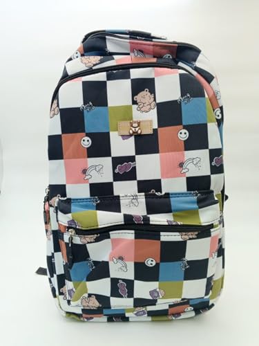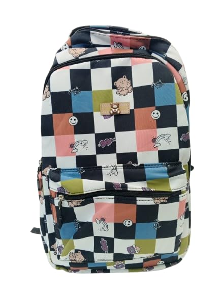 Generic - شنطة ظهر للاطفال بنمط مربعات - مربعات متعددة الالوان مع طباعة كرتونية - شنطة مدرسية خفيفة الوزن مع احزمة قابلة للتعديل