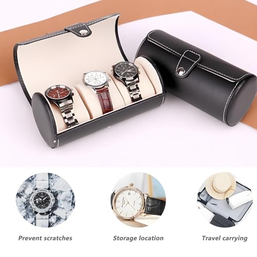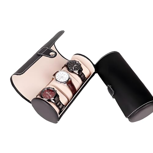 checkzed - حافظة ساعة للسفر بتصميم مربعات مصنوعة يدويا من الجلد للرجال، حامل ساعة بـ 3 فتحات مع حماية مخملية للتخزين المنزلي الآمن من شيكزيد (بكرة ساعة سوداء)