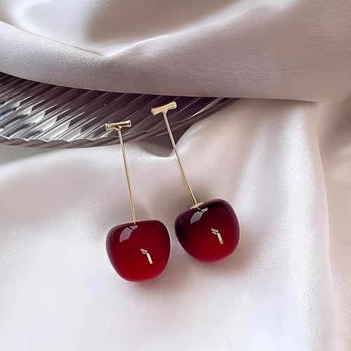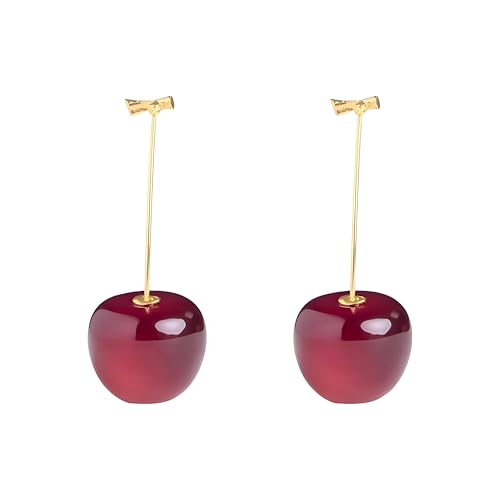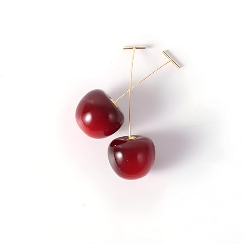 Generic - حلقان الكرز - تصميم قطرة الكرز الاحمر الساحر مع حلية فاكهة لذيذة، مجوهرات انيقة للنساء، اكسسوار متعدد الاستخدامات وجذاب لأي مناسبة
