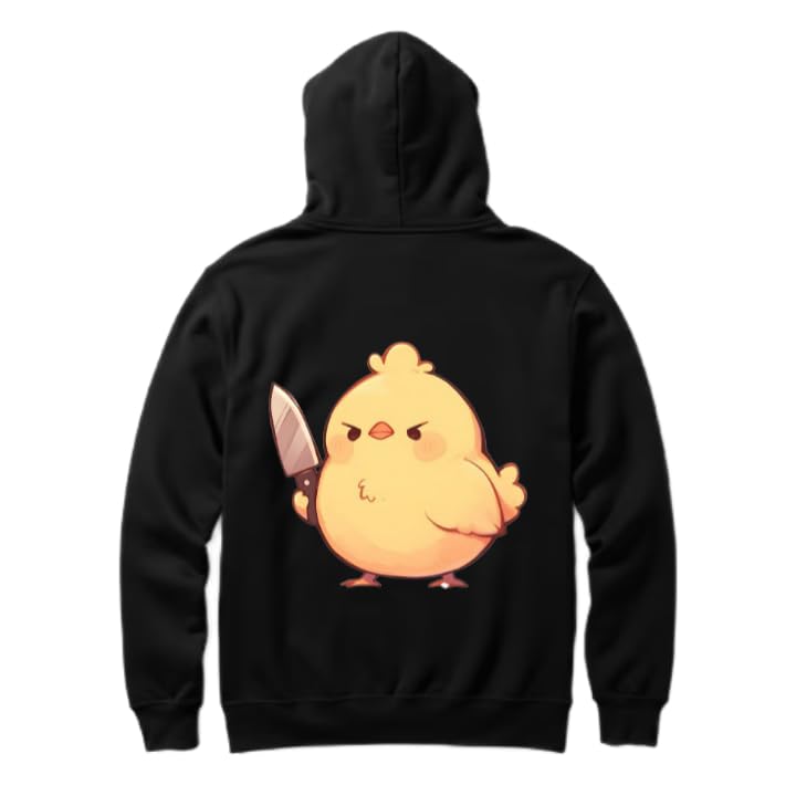 Generic - كنزة بغطاء رأس مطبوع عليها Chick with Knife أسود