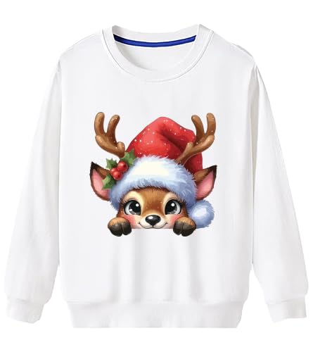 Generic - سويت شيرت عطلة الكريسماس، بلوفر قطن ابيض بتصميم حيوان الرنة، بلوزة شتوية باكمام طويلة للاحتفالات الشتوية مقاس (L)