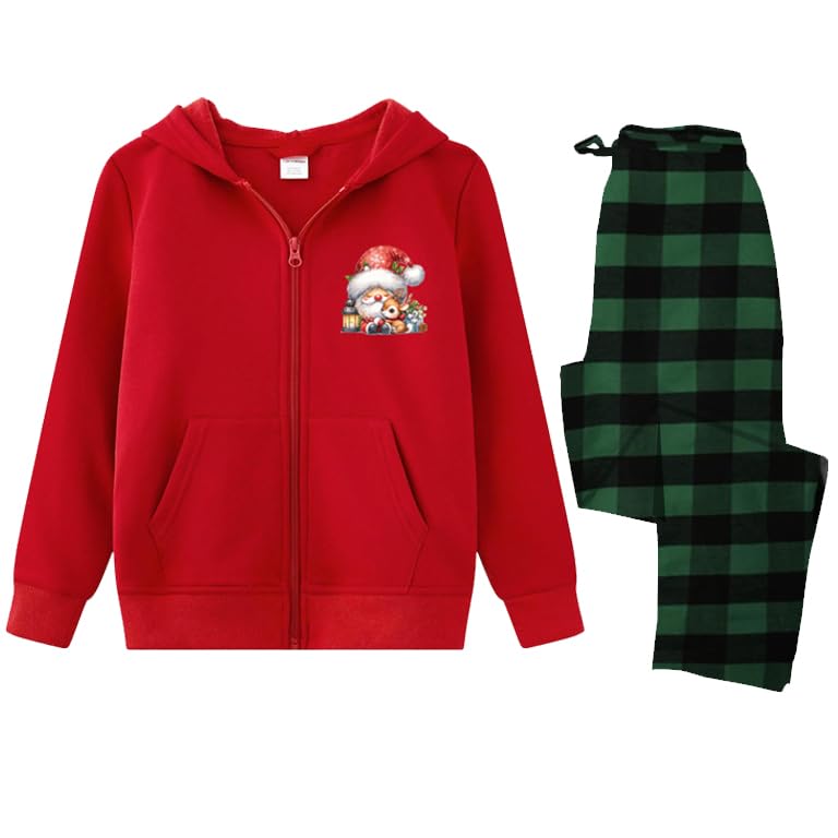 Generic - بيجامة للكريسماس، بغطاء أحمر للرأس وبنطلون بنمط مربعات خضراء مناسب للعطلات، مقاس اكس اكس اكس لارج 3XL، طقم من 2 قطعة