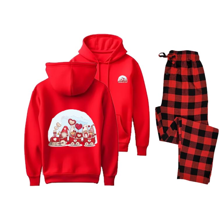 Generic - طقم بيجامة للكريسماس، هودي احمر بتصميم بيت خبز الزنجبيل وسروال منقوش، ملابس نوم للعطلات من قطعتين مقاس (3XL)