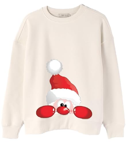 Generic - سويت شيرت بتصميم سانتا كلوز للكريسماس، ابيض وبيج على بلوفر، ملابس شتوية بطابع العطلات، مقاس (M)