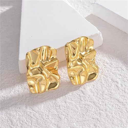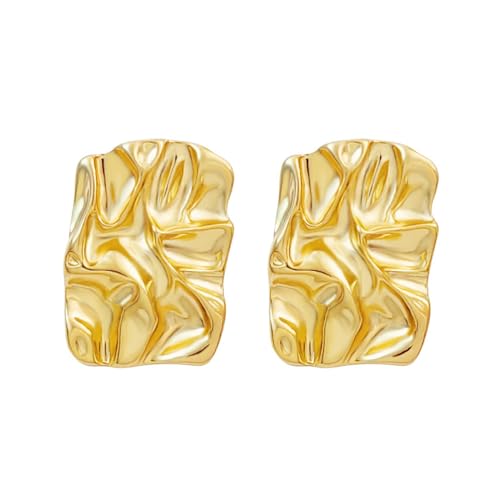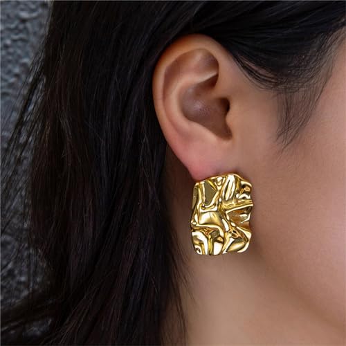 swglcowo - اقراط ذهبية مكتنزة مستطيلة الشكل مطروقة غير منتظمة التجاعيد مربعة الشكل قابلة للطي مطلية بالفضة اقراط متدلية للنساء، اقراط متدلية بسيطة للحفلات الراقصة والعطلات الصيفية، هدايا مجوهرات عصرية