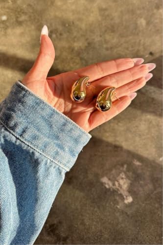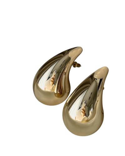 Generic - اقراط (حلق) حلقية مكتنزة للنساء، خفيفة الوزن على شكل دمعة ومطلية لا تسبب الحساسية، سميكة بتصميم قطرة ماء كبيرة
