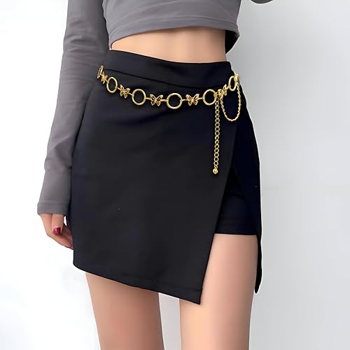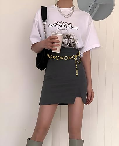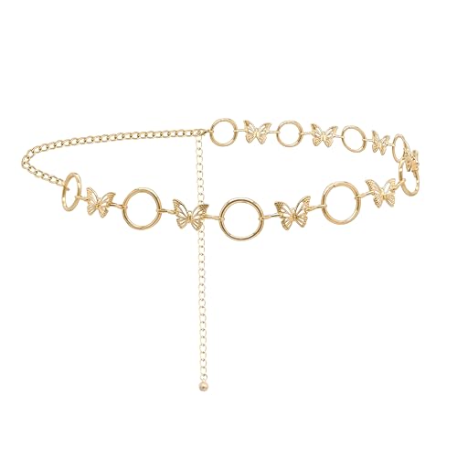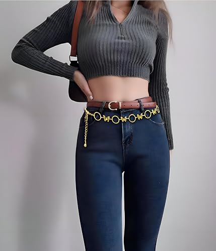 Generic - احزمة معدنية دائرية - حزام نسائي انيق مزين بسلسلة بمقاس قابل للتعديل، مثالي للفساتين والازياء الكاجوال، مصنوع من خليط معدني متين بتصميم عصري بسيط.