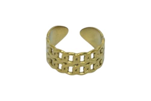 Generic - خاتم مفتوح من الستانلس ستيل بتصميم دوائر - ذهبي