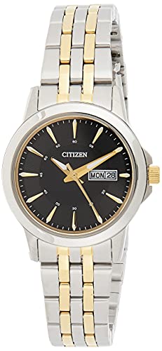 Citizen - ساعة حريمي من سيتيزين، بحركة كوارتز وعرض انالوج، مع سوار من الفولاذ المقاوم للصدأ، لون أسود -EQ0608 55E