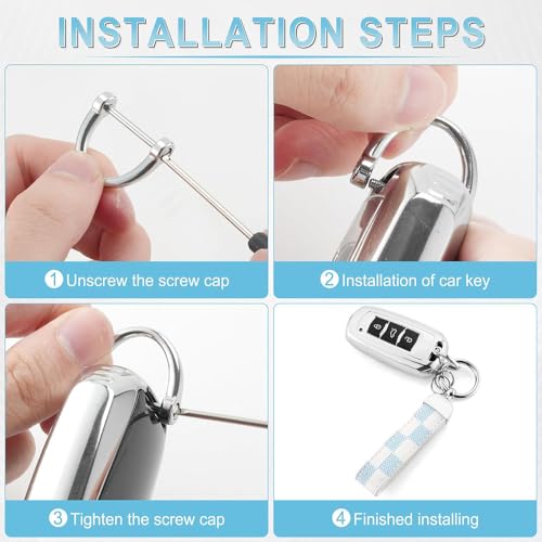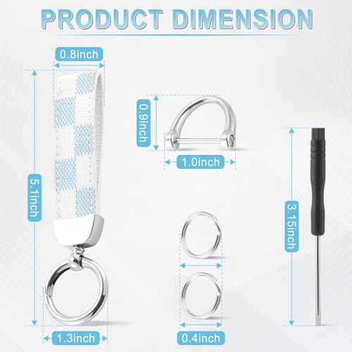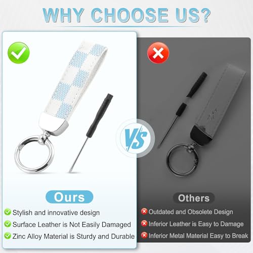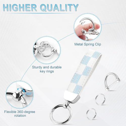 fashion mania - سلسلة مفاتيح جلدية كلاسيكية للسيارة باللون الفضي (نمط مربعات زرقاء وابيض)