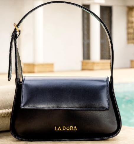 Generic - شنطة كتف كلاسيكية، جلد صناعي اسود، قطع معدنية ذهبية