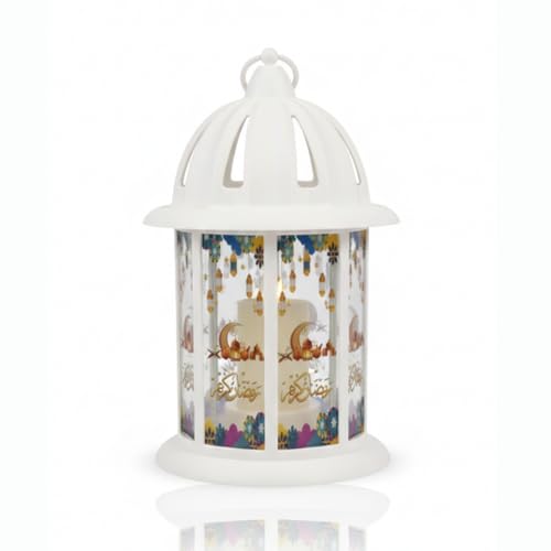 Generic - فانوس رمضان الكلاسيكي باللون الأبيض مع شمعة LED