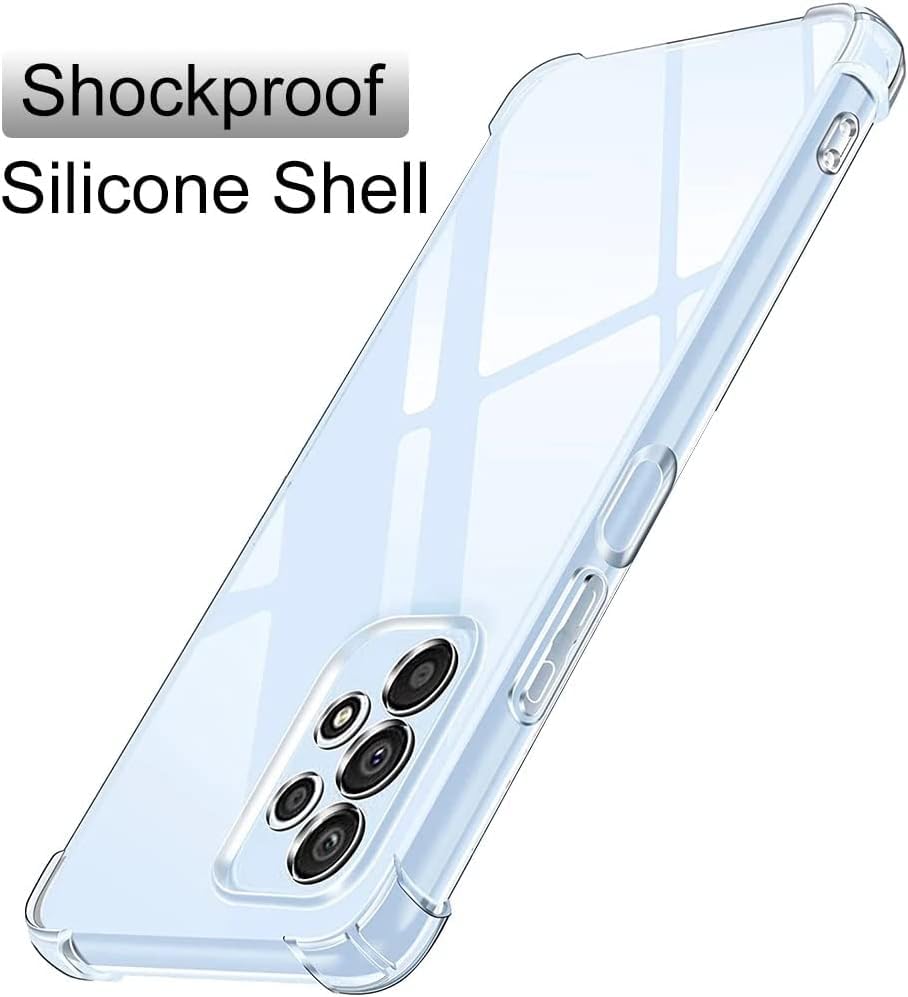 - جراب شفاف مضاد للصدمات من البولي يوريثين الحراري مع حماية للكاميرا متوافق مع سامسونج جالاكسي A73