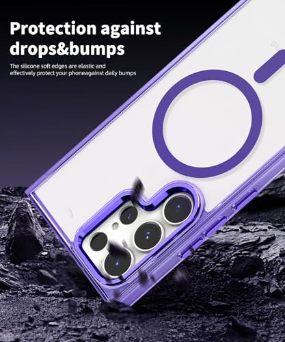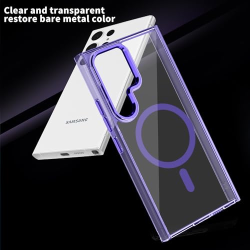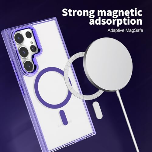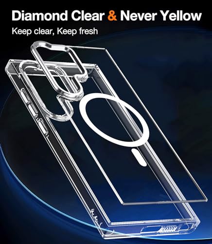 جراب حماية شفاف مغناطيس، جراب حماية متوافق مع الشحن اللاسلكي بحماية بدرجة عسكري، مقاوم للخدش والصدمات، جراب موبايل بتصميم رفيع، لموبايل سامسونج جالاكسي S24 الترا