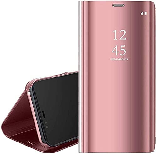 Generic - جراب بتغطية كاملة بتقنية كلير فيو بمستشعر حساسية اللمس لسامسونج A03 - روز جولد