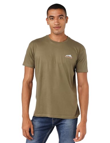 Cleocotton - تيشرت ويسترن مطبوع وبرقبة دائرية ضيقة للرجال من كليو كوتون، لون أخضر عسكري (Exp)، مقاس XL (عبوة من 6 قطع)