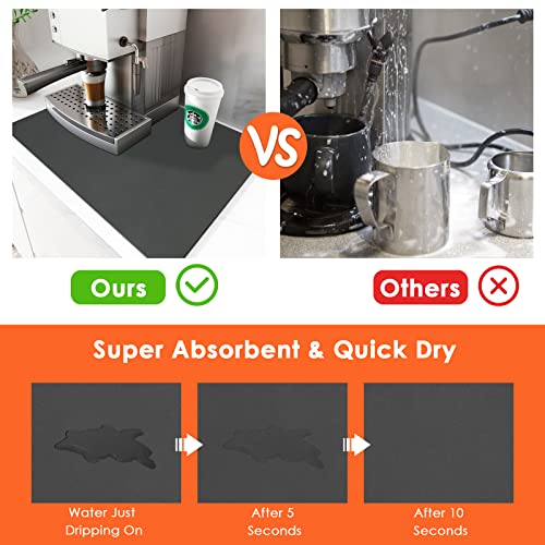 Tuozaiira - بساط تحضير القهوة لسطح الطاولة، بساط تجفيف الأطباق للمطبخ، ملحقات إعداد القهوة للوضع أسفل ماكينة القهوة ووعاء القهوة - بساط لسطح الطاولة أسفل الجهاز، بساط تصريف ماص، رمادي غامق