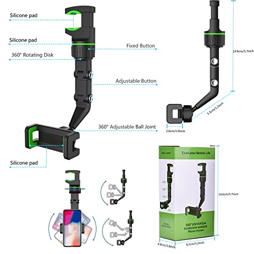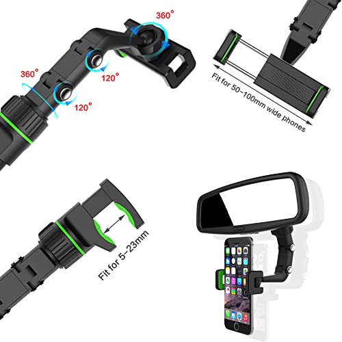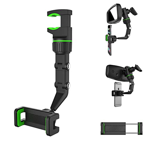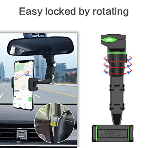 Cofteve - حامل موبايل لمراية صالون السيارة متعدد الوظائف وقابل للدوران 360 درجة، حامل لموبايل نظام تحديد المواقع GPS للسيارة قابل للتعديل والتعليق لجميع انواع الموبايل (اخضر)