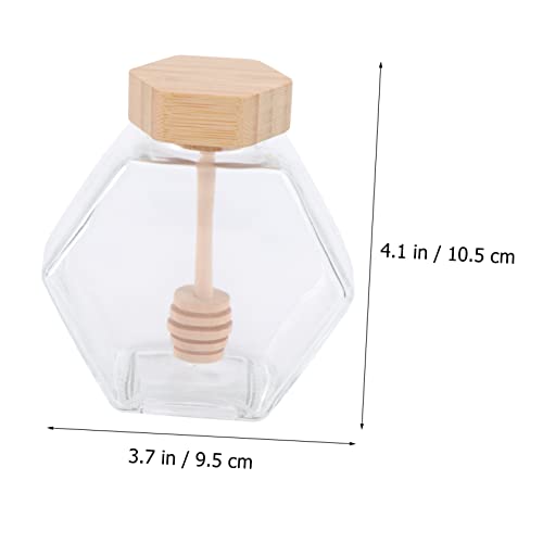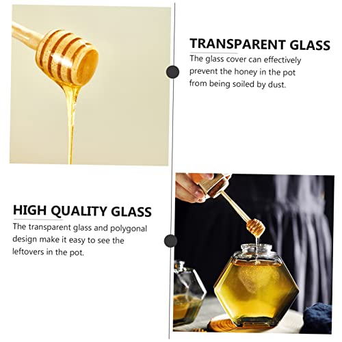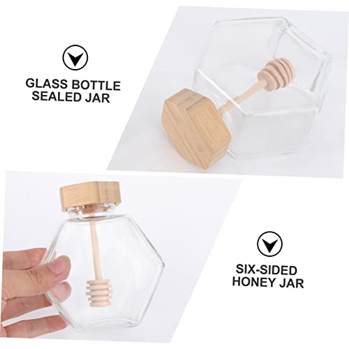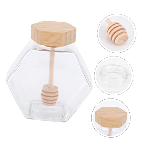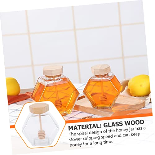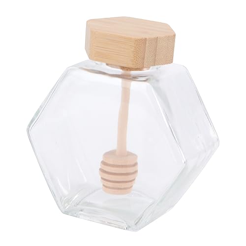 COLLBATH - برطمان فارغ لتخزين العسل من كولباث زجاجي سداسي مزخرف للعسل عسل صغير مع عصا غمس الخيزران قابل لإعادة الاستخدام