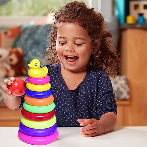 - مجموعة حلقات ملونة بأحجام مختلفة لمتعة التكديس والتعلم.