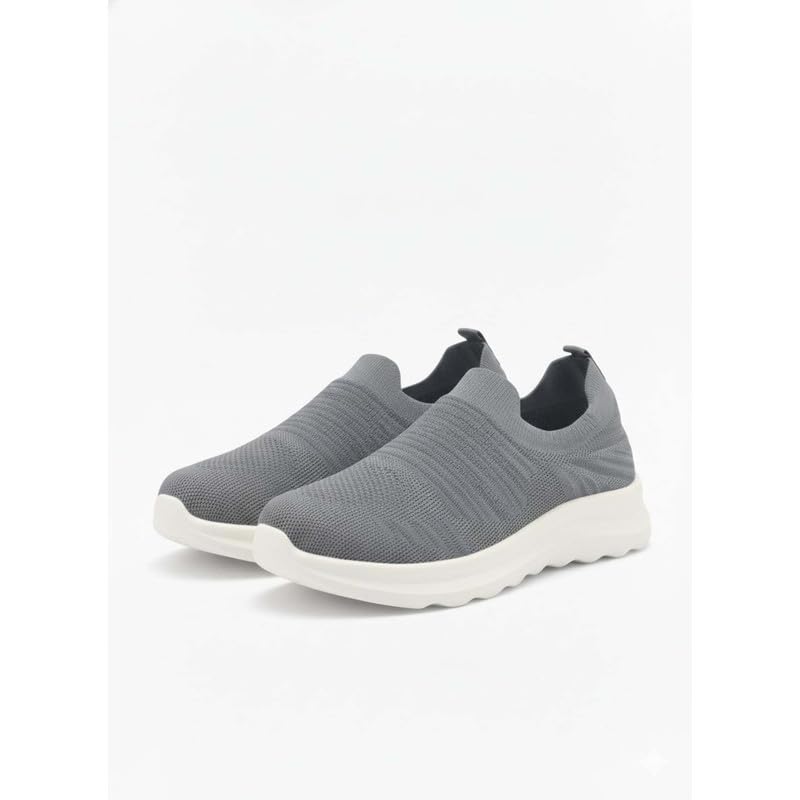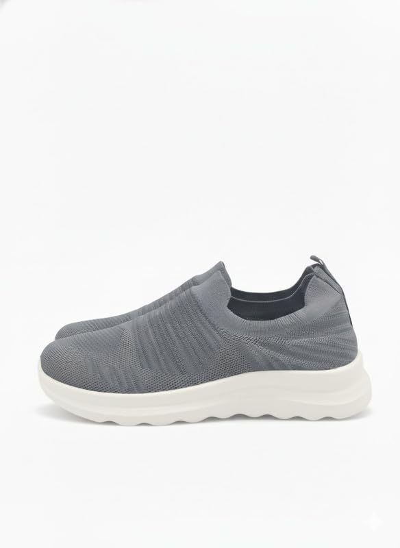 Generic - حذاء رياضي شبكي مريح، تصميم سهل الارتداء، خفيف الوزن، مناسب للمشي اليومي رمادي، نعل أبيض مقاس 42