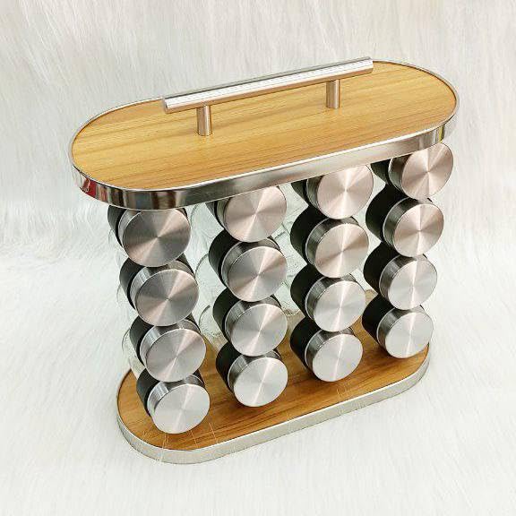 - - يحتوي الطقم على 16 برطمان زجاجي مع أغطية استانليس نقية للحفاظ على نضارة التوابل والبهارات.