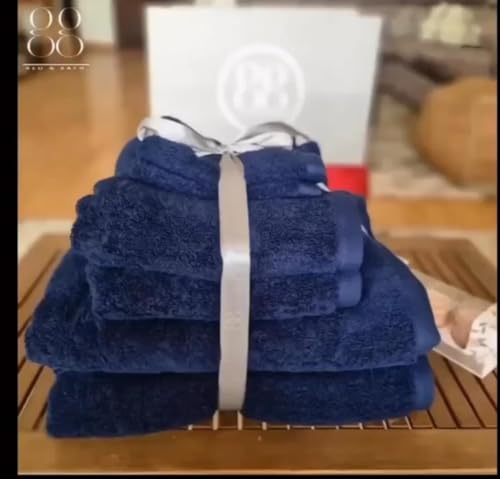 GG Bed and Bath - فوط قطن 100%، طقم كامل من 6 فوط باللون الكحلي (كحلي) (2 مقاس 90 سم × 1.5 م، 2 مقاس 50 سم × 1 م، 2 مقاس 30 × 50 سم)