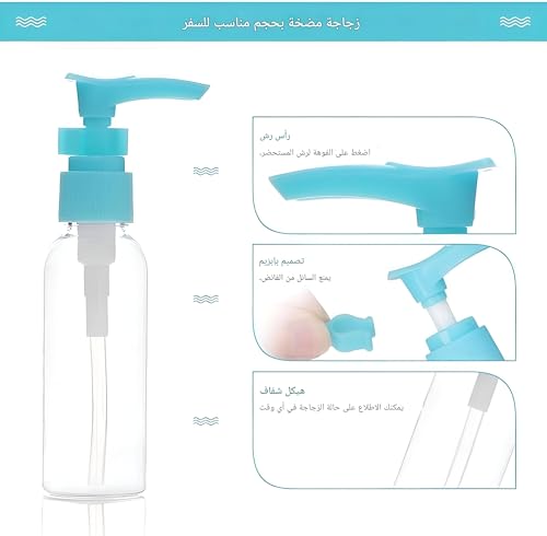 - صُممت زجاجات السفر هذه لتكون مقاومة للتسرب وتمنع الانسكابات الفوضوية وتضمن بقاء منتجاتك آمنة أثناء النقل. استمتع براحة البال مع العلم أن السوائل الخاصة بك ستبقى محفوظة، مما يسمح لك بالسفر دون قلق.