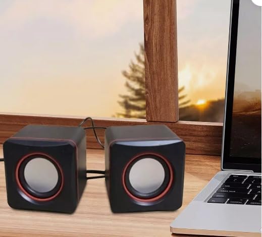 Generic - مكبر صوت للكمبيوتر بتصميم مضغوط وصوت قو مع، USB سلكي ومقبس صوت، 2 قطعة، أسود
