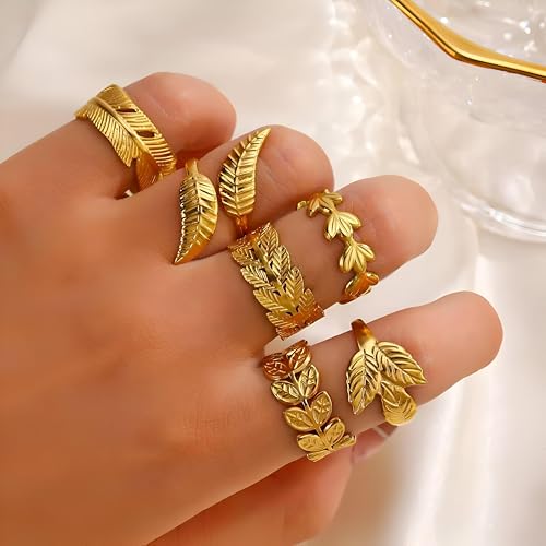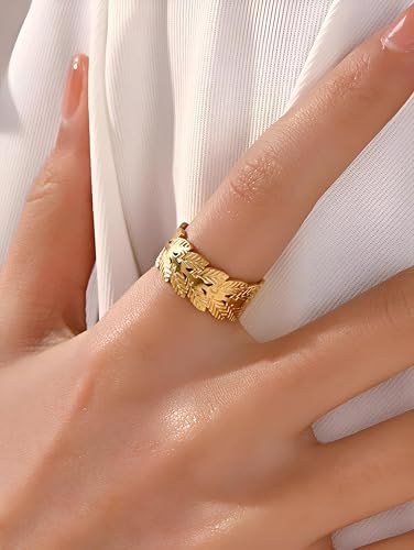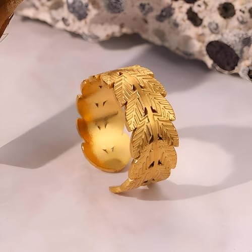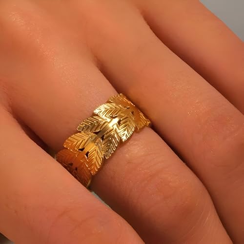 Generic - مجوهرات عصرية بتصميم ورقة شجر - خاتم مفتوح عريض قابل للتعديل للنساء، اكسسوار معدني انيق وانيق، مثالي كخاتم زفاف او هدايا، عصري ومتعدد الاستخدامات لجميع المناسبات