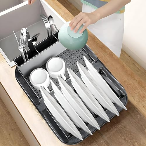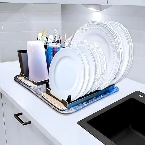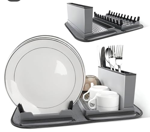 Generic - ملحق طبخ - حامل اطباق قابل للطي متعدد الوظائف مع حصيرة تجفيف ماصة لتجفيف الصحون بكفاءة وتخزين مريح بعد الغسيل
