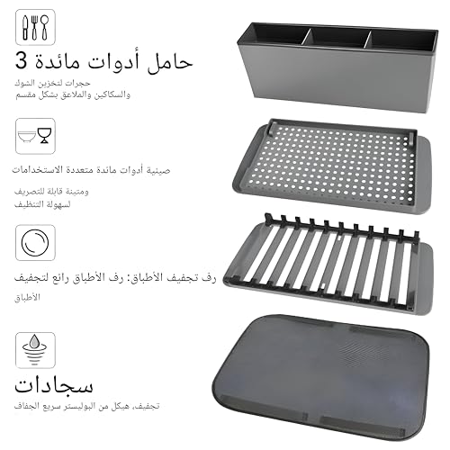 - يعد هذا الرف متعدد الاستخدامات، حيث يتيح تخزين الأطباق، الأكواب، الأوعية، وأصناف أخرى من أدوات المطبخ والمأكولات، ما يوفر مساحة تجفيف واسعة ويحافظ على سطح الطاولة خاليًا من الفوضى، مما يسهل تنظيم المساحة وتحقيق بيئة مطبخ أكثر فعالية.
