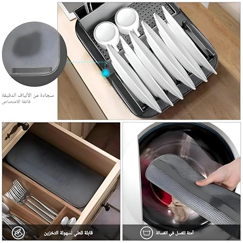 - مصنوع من مادة البوليستر عالية الجودة والمتينة التي تمنع احتباس الرطوبة وتضمن جفاف الأطباق بشكل فعال، مع تصميم أنيق وعصري يتناغم بسلاسة مع أي ديكور داخلي، ويعزز من جمالية المطبخ مع الحفاظ على مظهره العملي والمرتب.