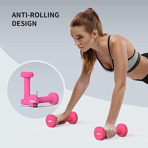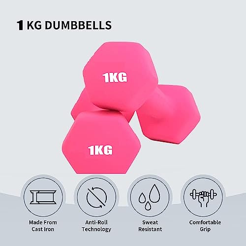 COOLBABY - دامبل أوزان للتمارين الرياضية من كول بيبي- لون وردي، 1 كجم - 2 قطعة