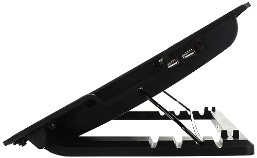 - يأتي في دعم من 11 بوصة إلى 17 بوصة متوافقة: مع أي كمبيوتر محمول (نوت بوك). 375 × 290 × 42 ملم هيكل شديد التحمل وسادة التبريد لتحمل أي وزن أو ضغط يتم وضعه. 2 × منفذ USB 2.0 (واحد يستخدم لتشغيل وسادة التبريد) 5 إعدادات ارتفاع قابلة للتعديل، العمر المتوقع للمروحة 40,000 ساعة، دعامتان مضادان للانزلاق.