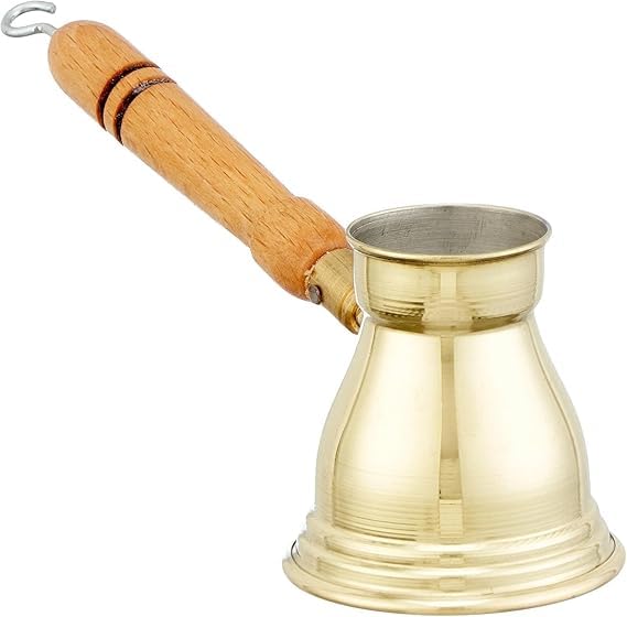 - وعاء قهوة أنيق: مصنوع من النحاس المطروق يدويًا، مع مقبض مريح وآمن، لتحضير وسكب القهوة بسهولة وأناقة.