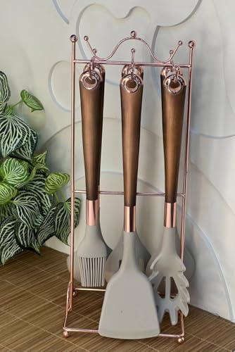 Generic - طقم أدوات مطبخ بلون نحاسي مع حامل، 6 قطع
