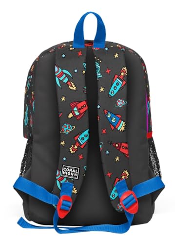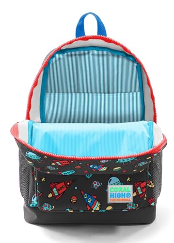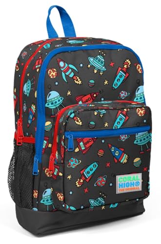 Coral High - شنطة ظهر مدرسية للاطفال باربعة اقسام من كورال هاي - لون رمادي داكن واحمر بنمط الفضاء