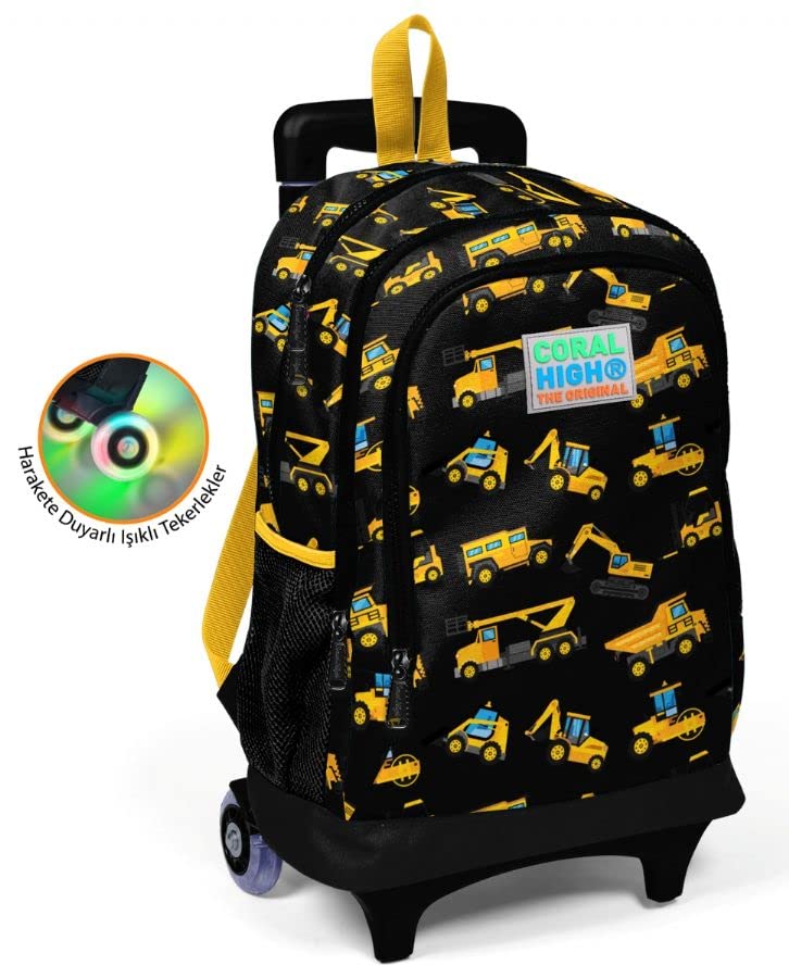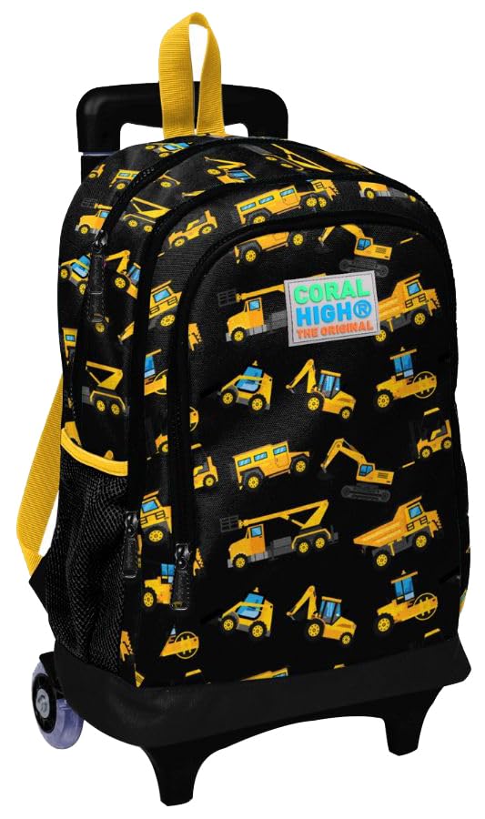 Coral High - شنطة ظهر مدرسية للاطفال بثلاث اقسام من كورال هاي - اسود واصفر منقوش