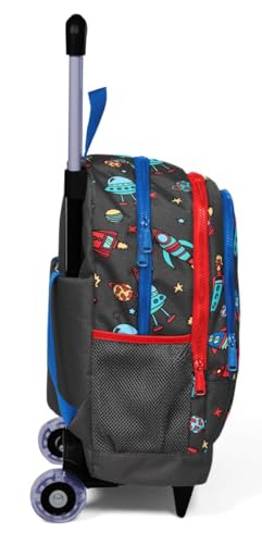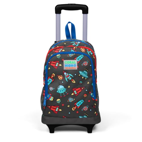 Yaygan - شنطة ظهر مدرسية للاطفال بثلاث اقسام من كورال هاي - لون رمادي داكن واحمر بنمط الفضاء عدد 1