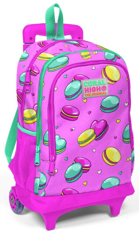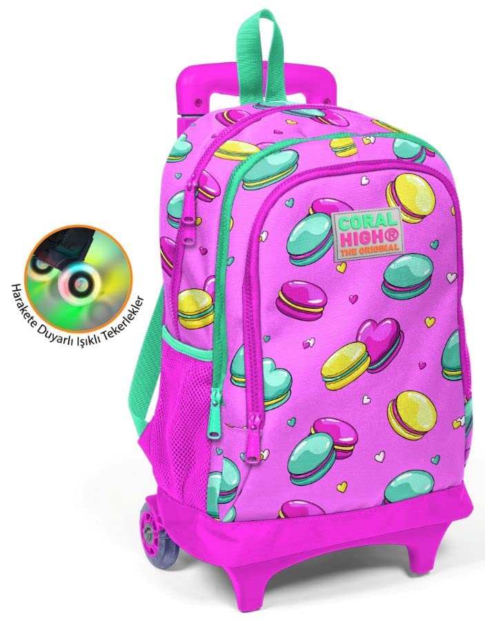 Yaygan - شنطة ظهر مدرسية أطفالي من كورال هاي بثلاثة أقسام ومساحة مطاطية، لون زهري فاتح وأخضر مائي بنمط ماكارون, متعدد الألوان عدد 1