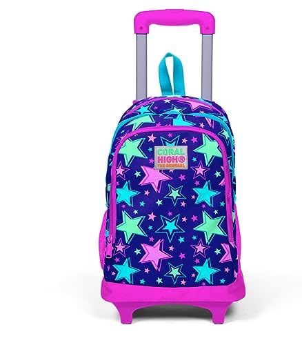 Coral High - شنطة ظهر كورال هاي مدرسية للأطفال بثلاثة جيوب ومساحة مطاطية بنقشة نجوم بلون زهري ساكس, متعدد الألوان عدد 1
