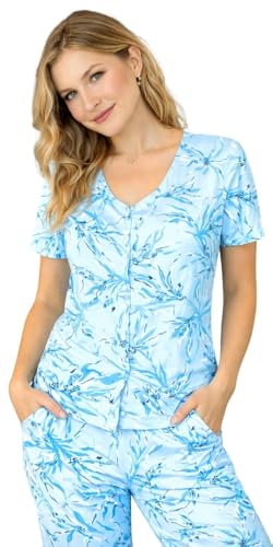 Alethad - بيجامة قطنية مع بنطلون وجيوب وجاكيت بازرار بلون ازرق فاتح