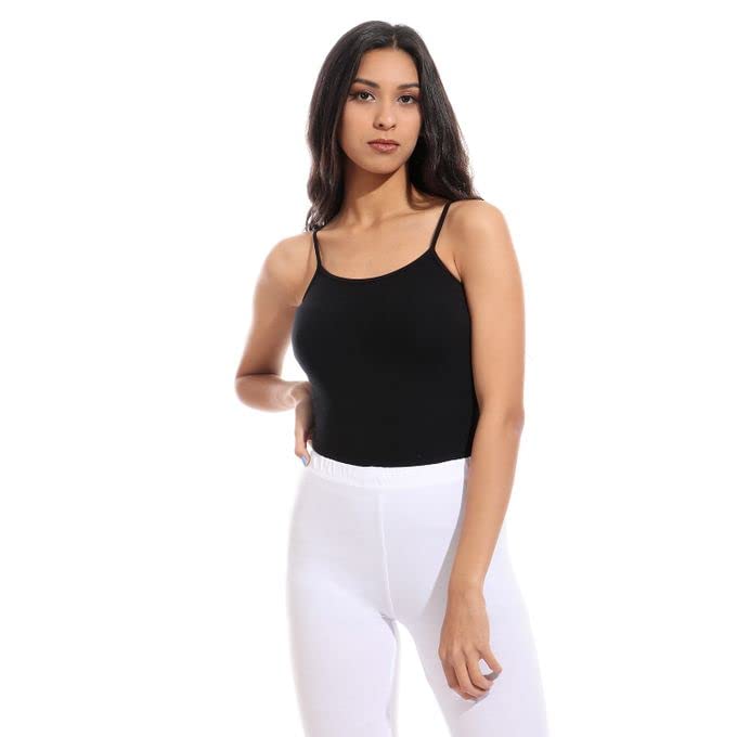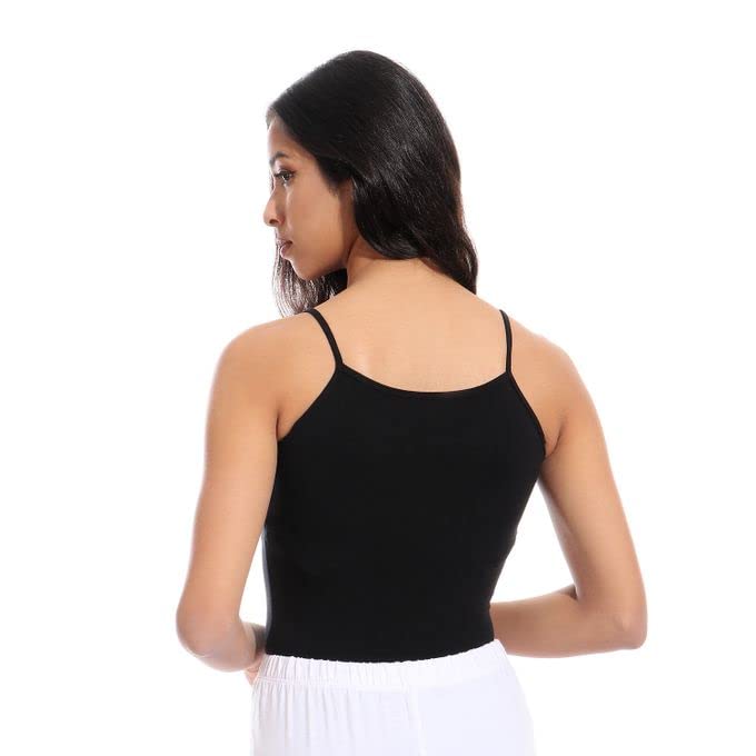 Mesery - توب قطني سادة مرن بحمالات رفيعة - لون اسود - مجموعة من 3 قطع نساء