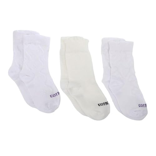 Cottonil - مجموعة شرابات قطن للبنات مكونة من 3 قطع بلون أبيض للمدرسة من قطونيل
